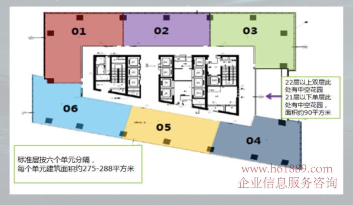 每層:6個單位、面積大概為256㎡-280㎡-560㎡-780㎡-整層、準確面積待相關部門終測量為準