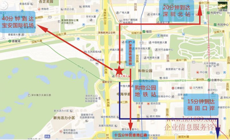 附近地鐵:1號線購物公園站H出口182米:H出口。福田站、廣深港高鐵福田站、(地鐵1、2、3、11號線)