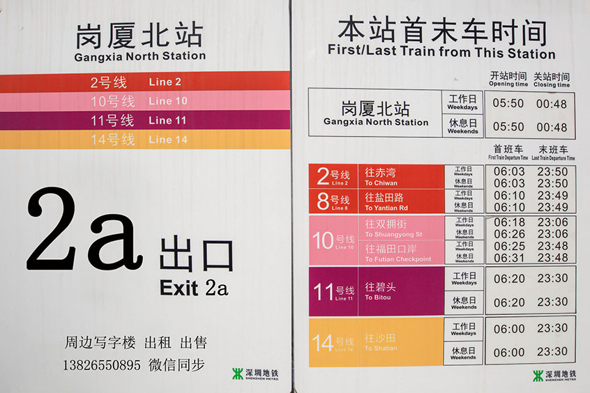 崗廈北地鐵站【深圳之眼】:深圳地鐵2號(hào)線【蛇口線】、地鐵8號(hào)線【鹽田線】、深圳地鐵10號(hào)線【坂田線】、深圳地鐵11號(hào)線【深圳地鐵機(jī)場(chǎng)快線】和深圳地鐵14號(hào)線【東部快線】的換乘站:2A出入口、2B出入口、52米【步2分鐘左右】