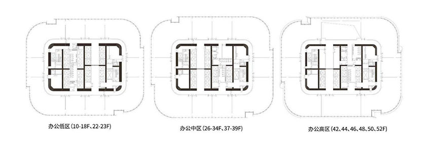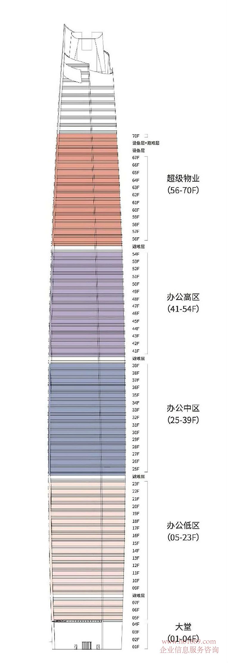 辦公高區 (41-54F)、辦公高區(42、44、46、48、50、52F) 、超級物業 (56-70F)