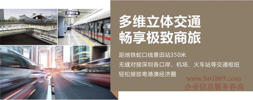 【交通價值】多維立體交通,暢達深港互聯全球立體交通助力企業恪守商務時間觀距地鐵蛇口線景田站350米,無縫對接深圳各口岸、機場、火車站等交通樞紐,輕松接駁粵港澳經濟圈,暢享極致商旅