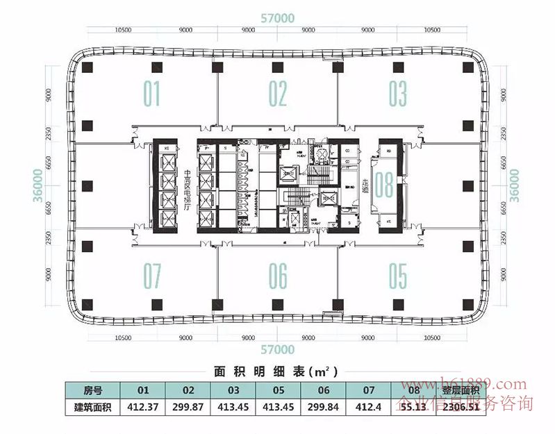租售面積:90平米、108平米、150平米、208平米、235平米、260平米、300平米、326平米、369平米、386平米、409平米、435平米、460平米、500平米、530平米、260平米、590平米、638平米、662平米、795平米、812平米、872平米、1250平米、1678平米、2750平米、標準層面積:2200-2750m2